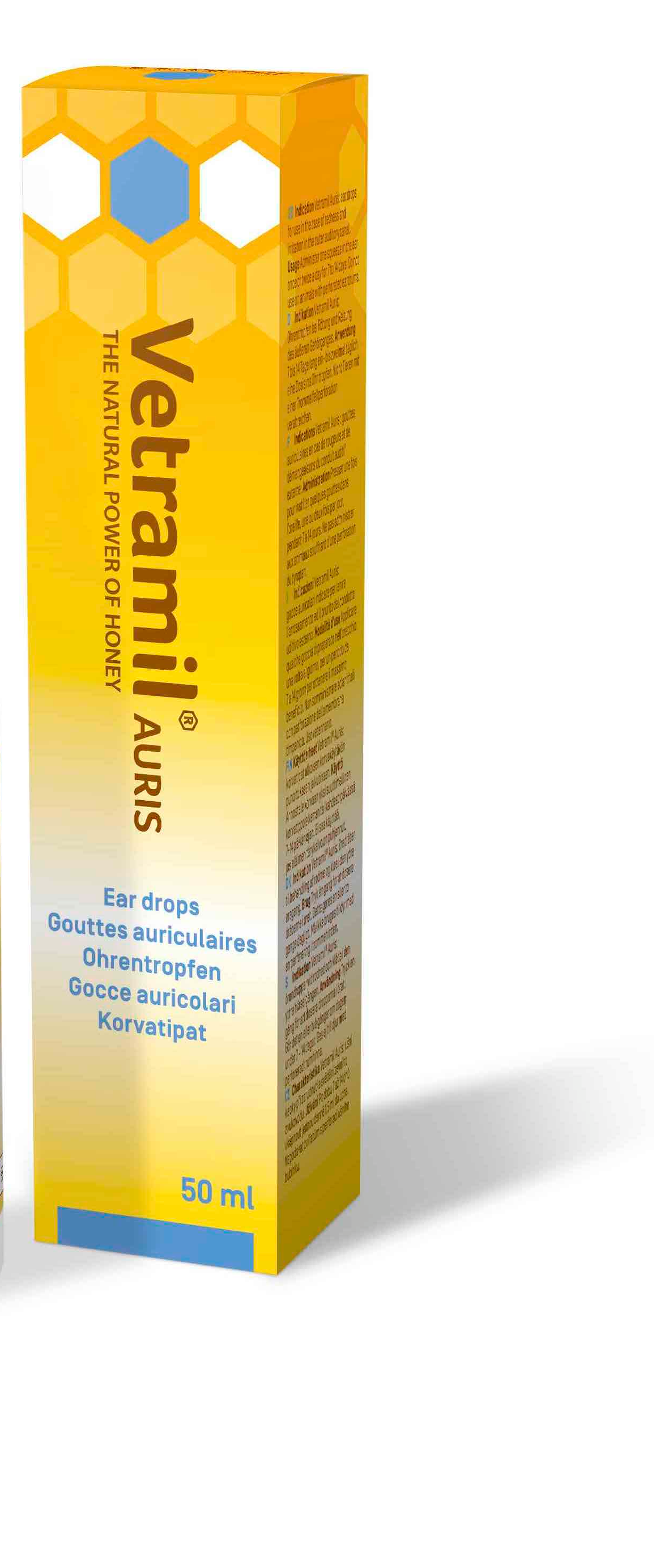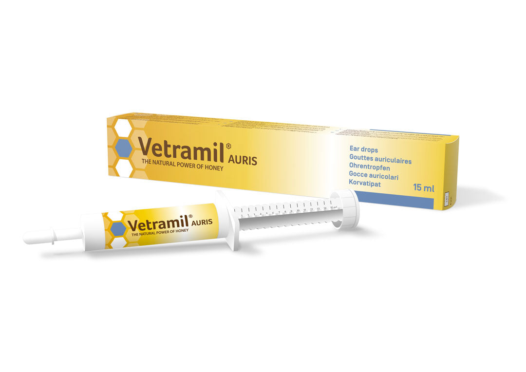 Vetramil®-Auris ist eine einzigartige Formel mit Honig zur Unterstützung der Abheilung des (äußeren) Gehörgangs. Die im Honig enthaltenen Antioxidantien wirken beruhigend auf die empfindliche, gerötete Haut im Gehörgang. Für die tägliche Pflege ist es wichtig, das Ohr sauber zu halten. Das in Vetramil®-Auris enthaltene Propylenglycol löst angesammeltes Ohrenschmalz und trägt so zur Reinigung des Gehörgangs bei.